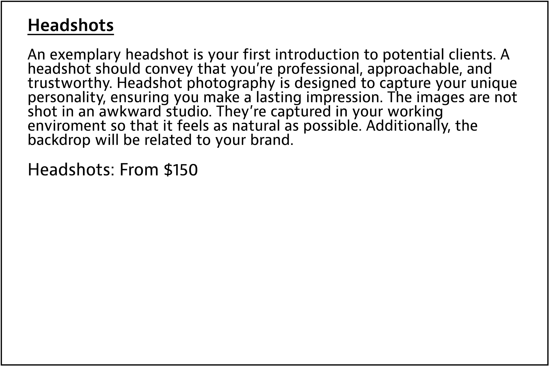 **Photo proofs will be sent within 1-2 days after the shoot is completed. Video will be 2-4 days. Final photos and media will be available for use AFTER payment has been made in full.